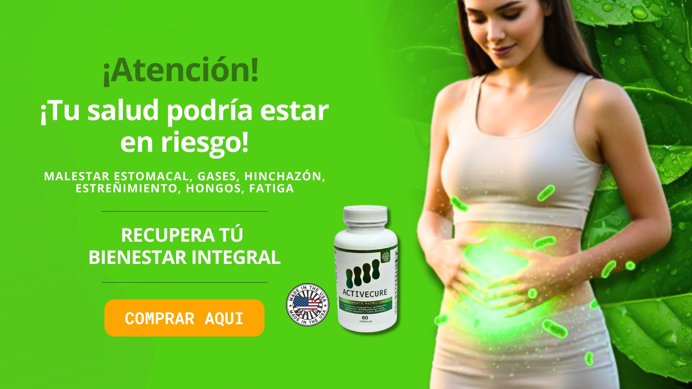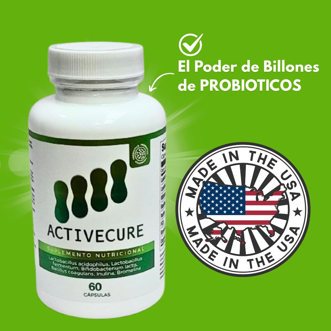 ActiveCure es una fórmula premium diseñada con 4 cepas probióticas estratégicas (Lactobacillus y Bifidobacterias) que trabajan en sinergia para restaurar tu microbiota, combatir la inflamación y mejorar tu calidad de vida desde la primera toma.