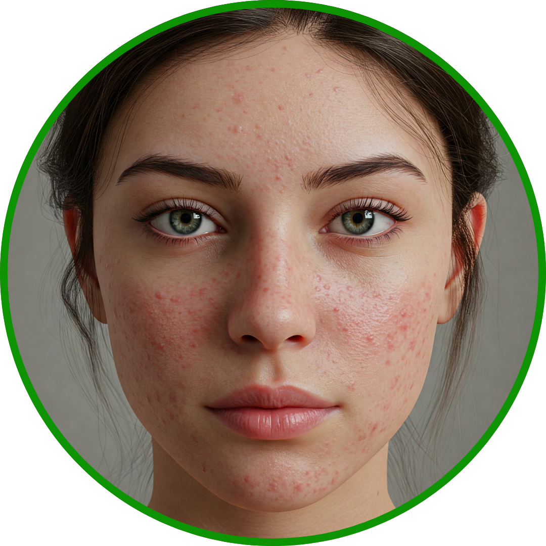 Brotes de acné, aumento de sebo en el rostro. Piel sensible volviendose roja, seca o irritable.